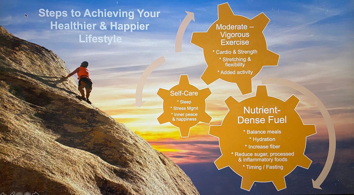 - Discussion (& inclusion) of exercise, sleep and stress management tools, motivation and mindset (working toward a more balanced approach versus 'all-or-nothing')